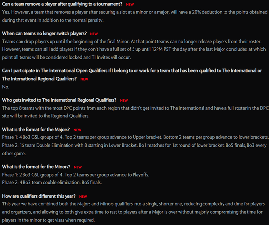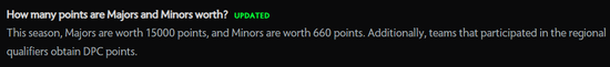 DPC积分除了原先的Major和Minor参赛队伍之外,Major预选赛和Minor预选赛的队伍也将获得DPC积分。Major将提供15000点积分,Minor将提供660点积分。
