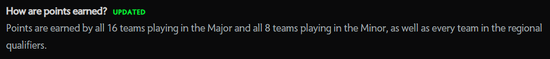 今年DPC积分仍然绑定队伍。而由于Minor冠军可以晋级Major,因此他们只会获得一次积分,即Minor冠军积分或者Major积分,取决于哪个积分更高