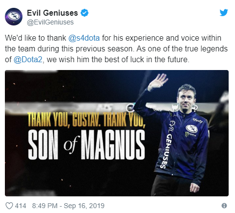 钱四爷合同到期转为自由人,离队。SumaiL与EG的合同尚未结束,根据EG的官方公告,SumaiL正在开放谈判,寻找新的下家。同时,EG宣布他们将参加第一轮Major与Minor的预选赛,明确声明不鸽。