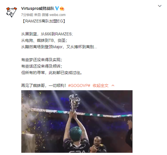 在TI9再度失利之后,VP队员是去是留就始终谣传不断,而在9pasha离队加盟NaVi之后,昨天VP宣布RAMZES也离队,去了EG。在加盟EG之后,RAMZES将转型三号位。