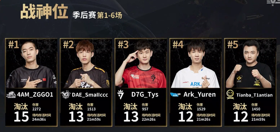 本局进入到决赛圈的是DAE、D7G两支满编队,4AM和RNG各三人。RNG和4AM两队在圈边率先交战,4AM成功打掉RNG两人。另一侧DAE被D7G打靶淘汰两人,随后4AM加入战场,协同D7G将DAE率先淘汰出局。蓝圈缩小,RNG独狼击倒4AM之后被反打淘汰,抓住时机的D7G迅速出动,收下4AM剩下的两人。D7G成功吃鸡。