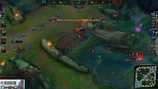 21分钟,刀妹被HKA围殴致死,ISG单带节奏被打断。27分钟,ISG锤石巨大失误被击杀,还连累队友被打残只能回家,HKA转身拿下大龙。29分钟,HKA大龙推进,同样的剧情锤石率先阵亡,但不一样的是这波ISG刀妹+NOC进场给霞创造了优良的输出环境,直接击杀HKA三人将其击退。33分钟,HKArush掉大龙后主动开团,2换3破掉ISG中路高地。