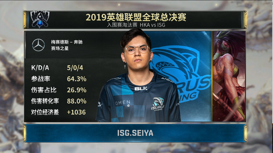 38分钟,HKA拿下远古龙,锤石前去做眼被击杀,HKA想要一波结束比赛,ISG殊死一搏但还是差了一点,HKA再击杀ISG四人后顺利拿下赛点局。本场MVP给到了HKA辅助洛。