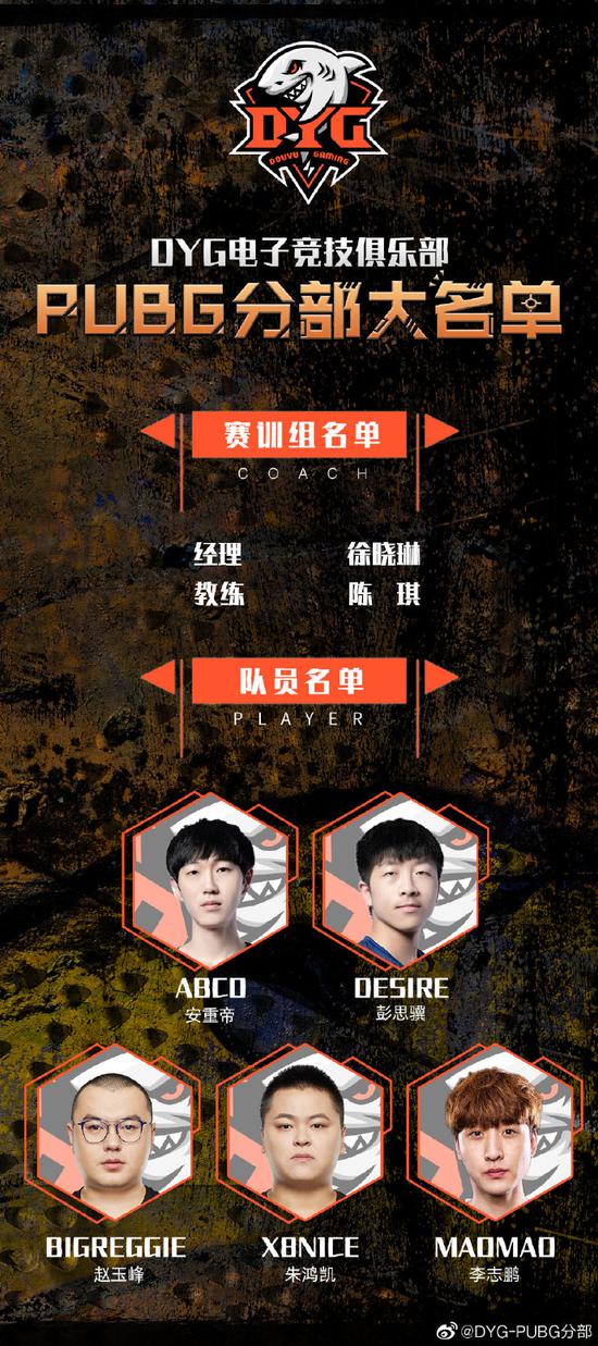 在国内外不少战队都选择解散旗下的PUBG分部的潮流之下,斗鱼在今天宣布成立了一下新的绝地求生俱乐部---DYG。