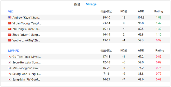 在图一Mirage上,先做防守方的VG依靠zhokiNg的强拆先拿下手枪局。由于MVP刚刚重组,尚处于磨合期的他们并没有打出以往的道具进攻体系,进攻变得简单硬朗,新人的枪法也在线,双方互有胜负后战成7-8结束。
