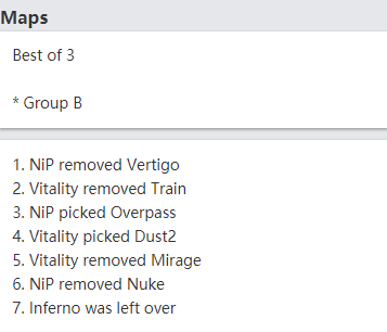 NiP vs Vitality 2-0(Overpass 16-6;Dust2 16-7)