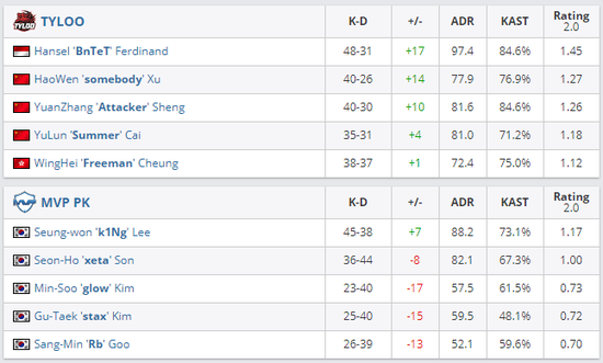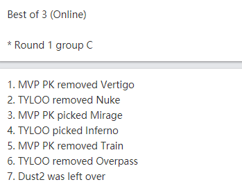 TYLOO vs MVP 2-0(Mirage 16-10;Inferno 16-10)
