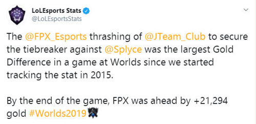 本场生死局结束后,FPX也在世界赛上刷新了S赛最大经济差的记录,本局比赛中FPX领先了21294经济,这也是至2015世统计数据以来,世界赛上最大的经济差!同时在加赛中FPX也打破了世界赛欧洲赛区加赛中不败的记录。