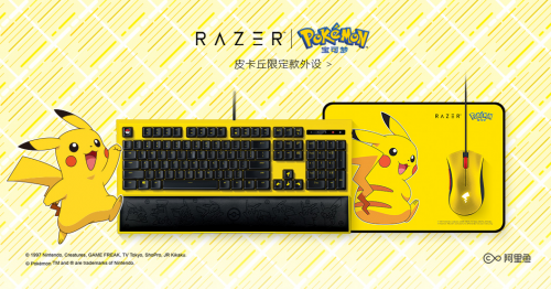 此次公布的RAZER|Pokémon系列,包括皮卡丘限定款鼠标+鼠标垫套装,以及皮卡丘限定款背光键盘两款产品。