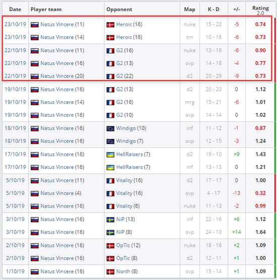 对于本次SLi群星联赛的卫冕冠军NaVi来说,连吞两场败绩(1-2不敌G2、0-2惨败于Heroic)草草收场的他们实在是伤透了不少粉丝的心。而在这场比赛中最有争议的,莫过于前不久才回归NaVi的GuardiaN,两场比赛5张地图里Rating竟然没有一次超过1.0
