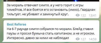 “在比赛6-7回合时,教练B1ad3叫了一个暂停跟胖球Boombl4说,他应该有个队长的样子,而不是单纯的当一个普通选手。不过我并没有站在他们身后观察很久。”