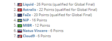 BLAST 联赛积分如下: