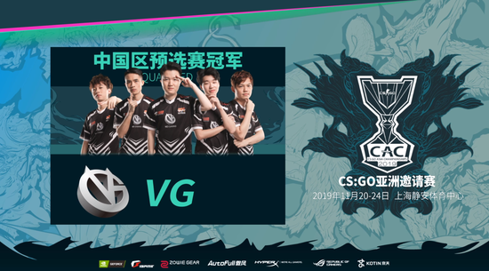 由完美世界主办的CAC 2019中国区预选赛展开最终比赛日争夺,最终VG连胜五图,连克5Power和EHOME,成功夺冠并晋级CAC 2019正赛。