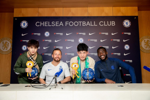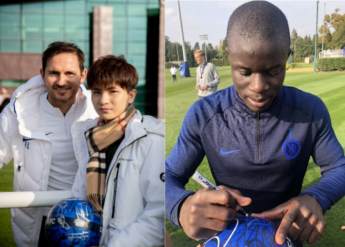 在观看完训练后,他们有幸邀请到助理教练莫里斯(Jody Morris)和切尔西新星托莫里(Fikayo Tomori)进行交流采访,并互赠礼物。期间主教练兰帕德,世界级球星坎特,切尔西主力芒特等都为大家亲自签名赠送了足球。