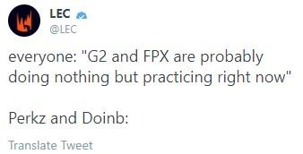 先是perkz在酒店发推特说知道了doinb住在哪间房,晚上准备每隔1小时去敲门gank!而两队的明星中单选手doinb和caps不仅要在比赛中决出谁才是今年的最强中单,在场外两位选手的线上battle率先开始。