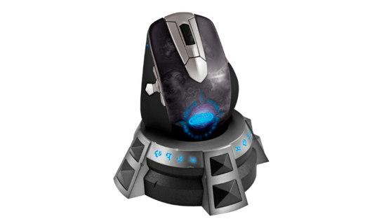魔兽世界无线游戏鼠标是赛睿首款采用“有线/无线”双模式连接设计的产品,硕大的祭坛式底座,即承担着超低延迟无线接收器的重任,也可在闲瑕时为鼠标进行充电。如果您忘记在闲瑕时为鼠标充电,只需将连接线从底座上拔下插入鼠标前端的Micro USB接口,魔兽世界无线游戏鼠标就会摇身一变成为一只有线游戏鼠标,同时还能为鼠标内部电池进行充电,彻底解决游戏时可能断电的后顾之忧。