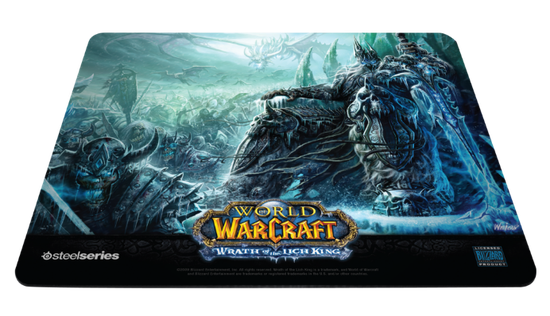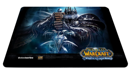 受复杂工艺导致的过高成本及产量限制,为了让更多玩家拥有《魔兽世界》限量周边,赛睿还为普通玩家设计了两张“巫妖王之怒”QcK游戏鼠标垫:一张为巫妖王阿尔萨斯高坐于冰霜王座之上,脚下是如潮涌动的天灾军团,另一张则是巫妖王阿尔萨斯手持“霜之哀伤”。两张QcK鼠标垫表面印刷精美,图案栩栩如生,均为不可多得的专业外设与游戏主题完美融合精品。