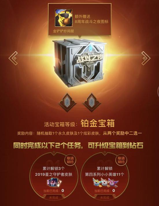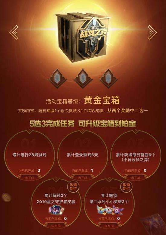 总之钻石宝箱中全是限定皮肤,不过任务也比较难,首先需要买今年的3个星之守护者皮肤,还要云顶之弈中拥有第4系列小小英雄,所以对于非氪玩家就看看就行了。