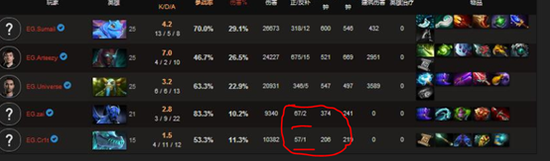 很显然,这与当面版本三号位的肉核:潮汐,人马,斧王和小鹿有些出入。这也可以稍微解释他在这个版本不是很强势的原因,他肉核型三号位并不是他的专长。