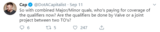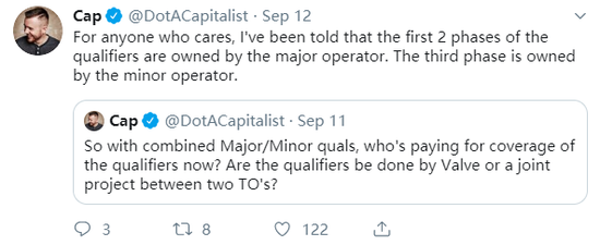 不过两个连着的Major和Minor赛事通常不会由同一个主办方来举办,那么究竟谁来负责官方预选赛的举办?解说&分析员Cap在推特上提出了这个问题。