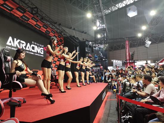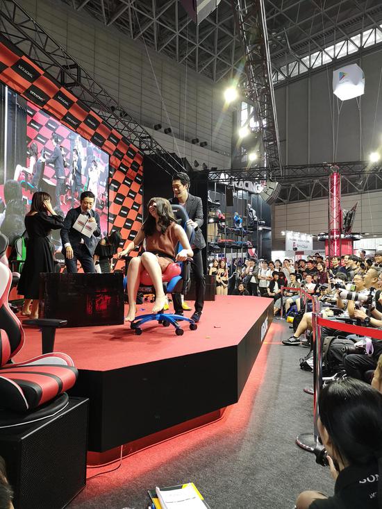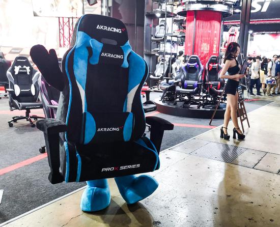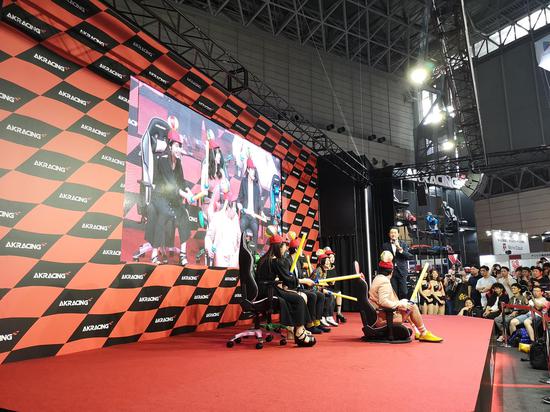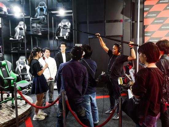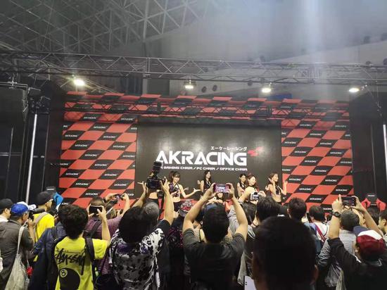 在以日本厂商为主导的会场上,大量中国厂商的身影也获得了海内外媒体的关注,其中就包括在现场吸睛无数的AKRACING阿卡丁。