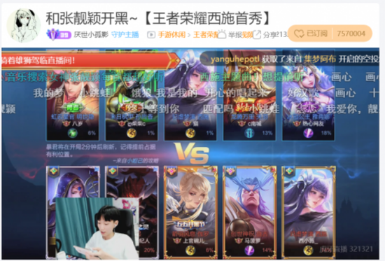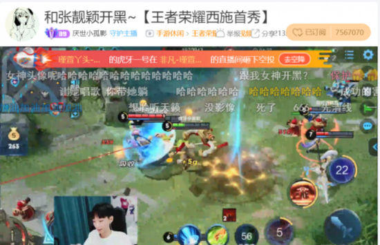 在等待张靓颖的过程中,孤影播放了当天新上线的英雄——西施的动画,疯狂向粉丝安利这个英雄。张靓颖在当天的直播中,每一把都使用了西施,张靓颖直言边聊天边打游戏对她而言是挑战。