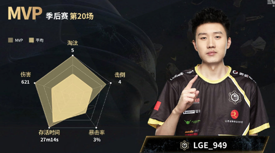 本局进入到决赛圈的是FPX和RNG两队满编,LGE三人和4AM两人。4AM两人在圈边被FPX卡住,4AM率先出局。紧接着,FPX和RNG两支满编队开始交战,双方先是一波二换二。随后LGE从侧面包抄偷掉RNG一人,随后FPX又打掉RNG最后一人。LGE一颗手雷将FPX击倒一人,FPX最后一人在低点也没有还手之力,LGE成功吃鸡。