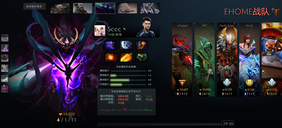 EHOME和茶队的这个BO3可以算是今天最精彩的一场比赛——选手们的操作行云流水,文斗也非常带劲。EHOME方面,Faith_bian是突出一个彩虹屁。茶队那边,平时儒雅随和的军体拳也忍不住回了几句。而令人感到迷惑的是,凡是EHOME主动嘲讽对面的局,他们竟然都输了!输第一把,和阵容的关系很大。EHOME选了血魔,但vtFαded却未能在对线期占到任何便宜。恰恰相反,EHOME的优势路被茶队的人马火女爆了。与此同时,军体拳的幽鬼则保持了完美的个人节奏。20分钟,手持辉耀的幽鬼让EHOME感到了彻底的绝望。