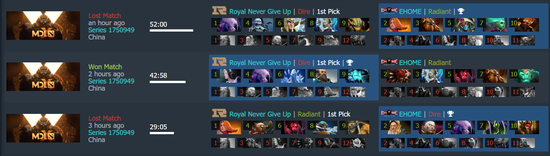 今天的最后一个BO3,EHOME终于打破了“不嘲讽就赢,一嘲讽就跪”的魔咒。不过就过程而言,虽然RNG一路上给了很多机会,但EHOME还是赢得非常艰难。BO3的第一把,EHOME的虚空光法卡尔在20分钟为观众们带来了一波精彩的团战配合。除此之外,Faith_bian的兽王也有几次亮眼的单杀操作,而XinQ的拉比克则是全场在秀。到了第二把,EHOME在阵容上缺陷较大——三号位血魔毫无作用,毒狗和宙斯都被蓝猫关了。于是乎,比赛就进入了最关键的决胜局。