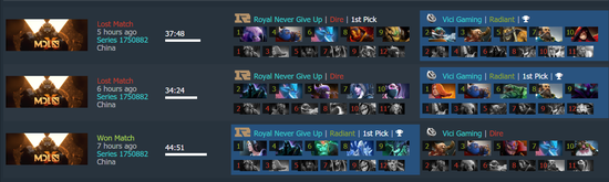 作为本次比赛中另一个对亚巴顿情有独钟的战队,RNG在对抗VG的比赛中两次给Flywin选出了这个中看不中用的英雄。而之所以RNG能在第一局取得胜利,其实和亚巴顿基本上没有关系——36分钟的高地团战,Setsu的黑鸟毁灭了VG的后排,一个大招融化火枪,VG惨遭翻盘。尝到苦头后,VG在后两局都将黑鸟关进了黑屋,并放弃火枪,给Ori拿出更扎实的船长。第二局,拒绝者的幽鬼除了在27分钟那波冲高地中不慎殒命外,其余时间都把Monet的黑弓冲得体无完肤。到了决胜局,VG在前中期就取得了极大的经济优势。RNG试图在虚空的带领下找回节奏,但等待着他们的却是团灭的命运。37分钟,RNG缴械投降。