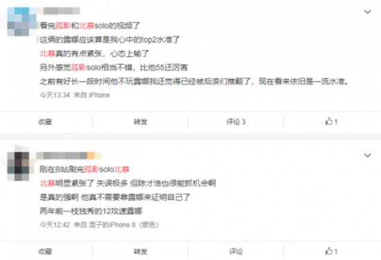 有人分析说,这场solo不管输赢对于孤影来说都没有好处,从带节奏的角度来说,赢了会说北慕放水,输了会说孤影太菜。从提升知名度的角度来说,粉丝量级巨大的孤影不会因赢得一场比赛给他带来矩形增长的人气,反之一旦输了比赛可是非常掉粉的。