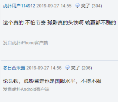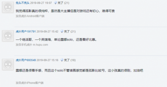 两人因同样是国服露娜引起虎扑jrs发帖讨论,在预测谁能获胜的投票上,北慕略胜孤影一筹,而比赛后,jrs纷纷站队孤影。从饱受质疑到获得肯定,王者主播孤影是如何收获jrs的心呢?