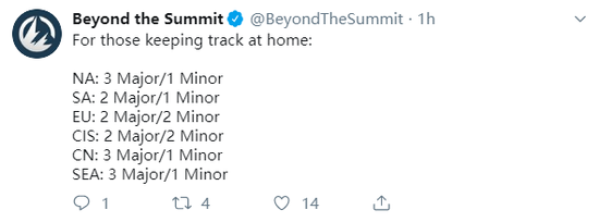 刚才,主办方BTS公布了这次Minor的名额分配。