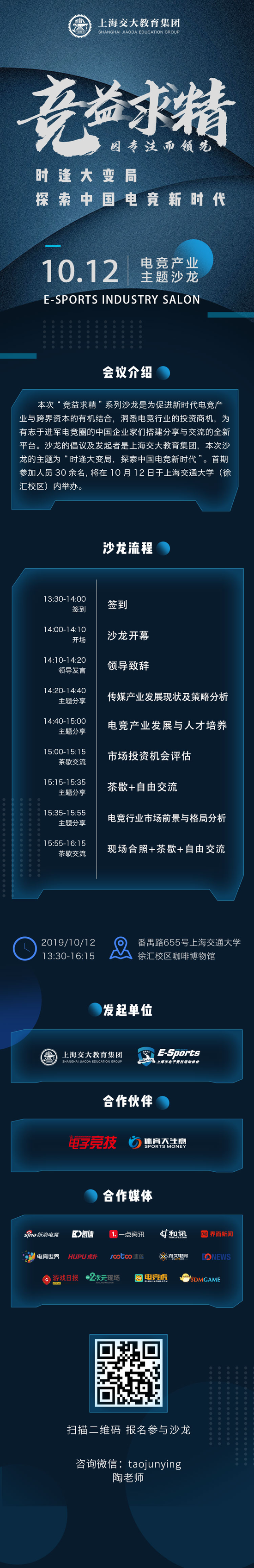 上海交通大学教育集团为探索电竞产业的趋势,与上海电子竞技运动协会、电子竞技杂志联合组织发起“竞益求精系列主题沙龙”,这次沙龙不仅请到了电竞圈内各领域代表人物,更是跨圈邀请传统企业领军者一同进行研讨交流。本次沙龙的主题内容为《时逢大变局-探究中国新时代》,就是希望促进参与者们一起把握电竞产业格局,洞悉电竞行业商机,促进产业与金融结合,成为新时代“电竞之巅”的交流平台。“竞益求精”这四个字源于主办方希望在电竞产业如今越来越步向正规专业化的今天,能将目前所面临必经的一些痛点难题通过跨界交流进行互补。这样中国电竞才能能够真正走迈向全世界,开创不受局限的宏大前景。