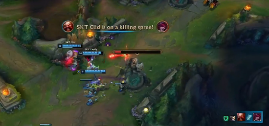 15分钟,RNG三人包抄下路二塔,强行击杀卡牌。而过后不久,中路T1三人由打野酒桶动了先手E闪,击杀霞还以颜色。