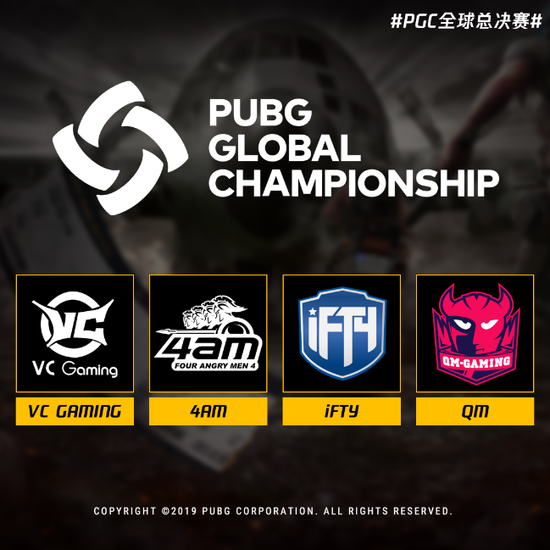 让我们一起期待VC、4AM、IFTY和QM四支战队在PGC赛场上的出色表现,预祝四支战队旗开得胜、取得佳绩!