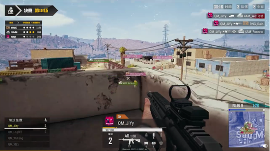 在PCM决赛阶段的最后一场较量正式开始前,积分榜上关于亚军头衔的争夺还是扑朔迷离,充满悬念。QM、D7G和Tianba三支战队的总积分相差无几,谁能够获得最后一张PGC的机票就取决于最后一场比赛的较量。在决胜圈关键时刻,QM战队仅剩下JiYy一人存活,并且陷入四面楚歌之中。这个时候占据三楼高点的JiYy迎来爆发,仿佛战神附体一般,开启“鹰眼”模式弹无虚发,接连打倒淘汰数人。正是这一刻的逆天操作,让QM战队在总积分上以一分的微弱优势,获得了本届PCM赛事的亚军,将最后一张通向PGC赛事的机票揣入怀中。