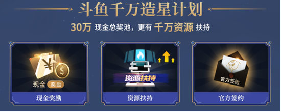 为了帮助广大有着“主播梦”的玩家,斗鱼也随着全民狂欢活动推出了千万造星计划,这里不仅有高达30万的现金奖励,还有官方签约特权及价值千万的站内资源扶持。在直播领域中内,斗鱼在用户规模、造星能力上有着无可比拟的巨大优势,许多千万级主播都诞生与此。如果内心有着主播梦,且对自己技术自信的话,不妨来斗鱼王者模拟战一试,下个全网顶级主播说不定就是你!