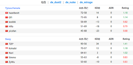 TYLOO.Female vs SWAY 1-2(Dust2 14-16;Nuke 16-14;Mirage 14-16 )