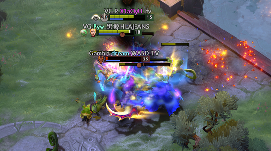 等敌法师的装备完全成型,Ori的老鹿和Pyw的火女就成了两个随时有可能爆炸的煤气罐。而在VG试图击杀敌法师的过程中,他们又被亚巴顿的救人技能搞得不胜其烦。等亚巴顿吃下A杖碎片,敌法师便可以在VG的半场为所欲为。48分钟,Gambit先下一城。