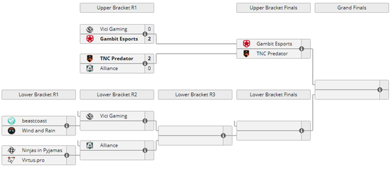 小组赛全部结束,掉入败者组的四支队伍是BC、WaR、NIP和VP,而站在胜者组的四支队伍则是VG、Gambit、TNC和Alliance。不过,今天的比赛并没有就此结束。就在淘汰赛名单诞生的下一秒,胜者组的第一轮BO3便直接开打。这两场比赛,也是我们今天要说的重点。