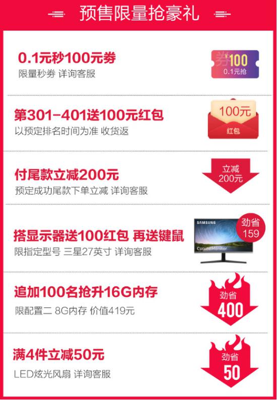 宁美双11大促,0.1元秒限量100元券、预定送百元红包、付尾款立减200元、搭配显示器送键鼠……还有惊喜福袋、宁晓美定制加大加厚鼠标垫等超多福利,应有尽有,还不抓住机会,速来抢购吧!