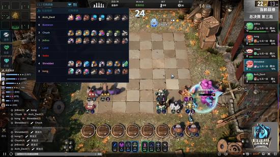 终局开战,排名较低的选手采取了更加激进的策略寻求排名提升,多达三名选手选择空城,这也对游戏环境产生了影响,大恶魔选择光羽猎维持连胜领跑全场,祈萌喵则是选择六法不温不火排名中段——而Jinsoo在22回合做出了两星飞机彻底改变了局势。