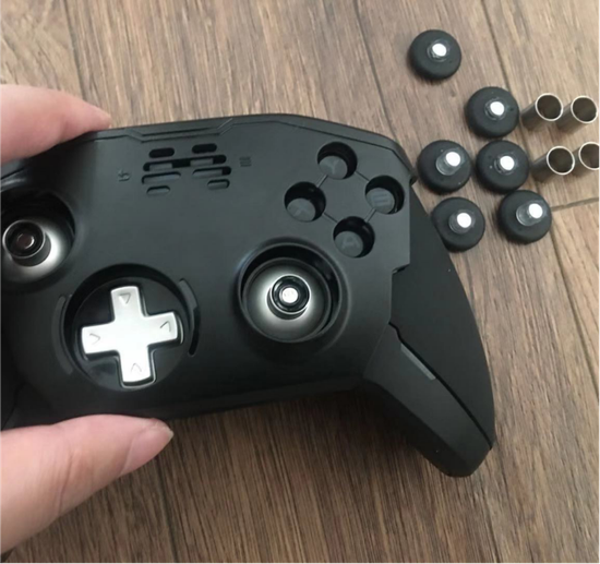 另外,北通宙斯游戏手柄的键帽采用了嵌套式结构,只要打开手柄的面壳即可根据平台调整ABXY四个按键的位置。可调整的远远不止键帽,北通还提供了3组可以更换的摇杆组件。3组摇杆高度各异,不同的高度可以提供不同的行程和转动范围,满足玩家不同游戏中,对操作的追求。整个外壳也是可拆卸的结构,可根据玩家自己的喜好,购入官方更新的主题外壳,随意更换。