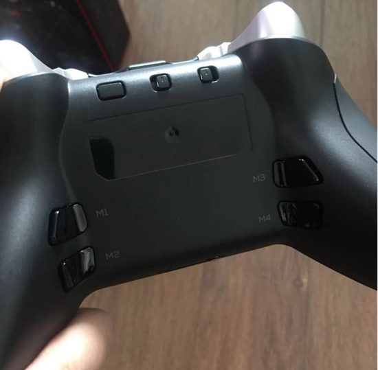 背键的设计上,微软精英手柄二代延续了一代的4枚可拔插背部拨片,但这些大面积的拨片会产生一个误触问题,因此很多玩家会选择拆除背键拨片玩游戏。