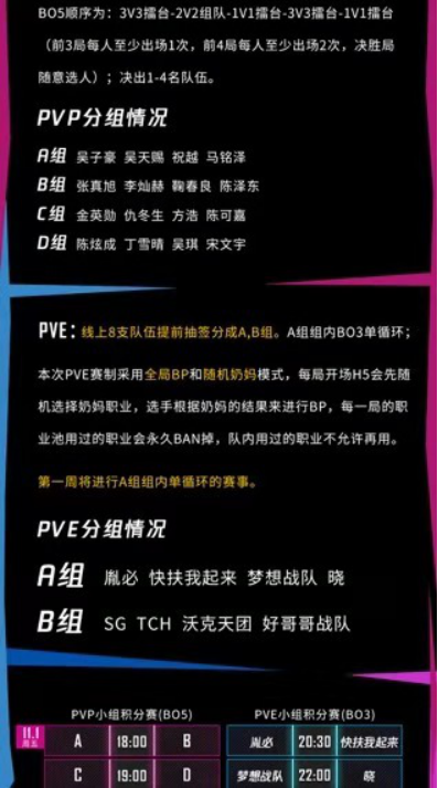据悉这次DPL联赛一共分为PVP以及PVE两种对抗模式,截止到现在PVP选手已经完成了分组,大战一触即发。在11月1日至3日的这三天中,选手将会以BO5的形式进行对抗,本次PVE比赛引用了全新的Ban/Pick机制,随着机制的全新升级,也大大提高到了赛事的观赏性,大家拭目以待吧!