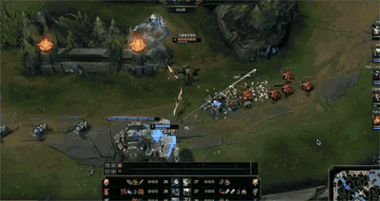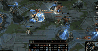 8分20秒,菲兹勾引潘森迎战,一发R圈住潘森,人马从河道草丛中扬刀而来,潘森危在旦夕。双方上路见状纷纷TP支援,但潘森先行阵亡,锐雯被落地三包一击杀。