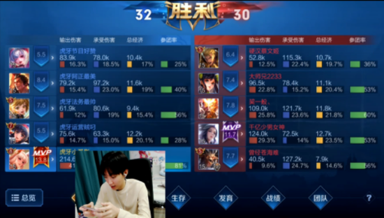开局十分钟,全队12个击杀,其中孤影拿了11个击杀以及一个助攻。吕布和孙膑在泉水等待复活,娜可露露在打buff,小乔正在中路清线,此时孤影被对方的五个人围攻。尽管这波1打5没成功,但看得出孤影是一个肯为团队冲锋陷阵并保护队员的人。这场游戏在孤影的带领下走向了胜利,数据显示孤影的参团率高达81%,输出超过41%,连同承伤、经济都是团队第一的成绩,顺利拿下了MVP。