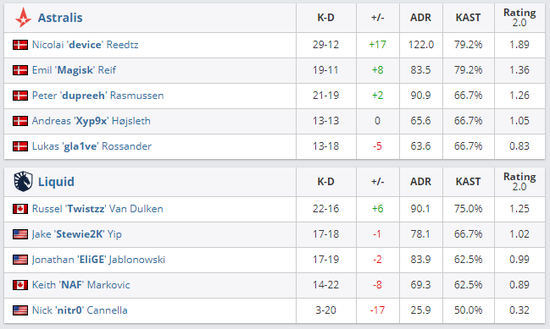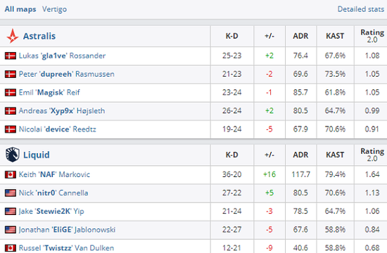 Astralis 2-1 Liquid (Vertigo 15-19;Nuke 16-11;Dust2 16-8)