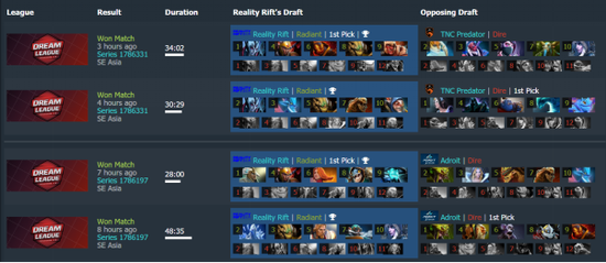 另外几个赛区,截至发稿前,东南亚第一天的赛程已经全部结束。看到TNC的战果,不明就里观众估计会说——Major冠军都输这样了,还说新版本对平衡性没破坏?这里只想说一句,TNC还是知道照顾自家赛区里的小兄弟,之前拿到的TI名额也让他们获得了休息的资格。令人感到意外的是,Kyxy的Reality Rift(对标是个指尖陀螺)却强势崛起。他们除了二比零TNC,还击败了打过MDL的小鲨鱼。相对于A组的冷门不断,Fnatic所在的B组倒比较正常。首个比赛日,Fnatic四战全胜,BOOM Esports则以三分紧随其后。而在中国区的比赛结束时,欧美方面的战斗才刚刚开始。究竟谁能晋级莱比锡Major?让我们拭目以待!